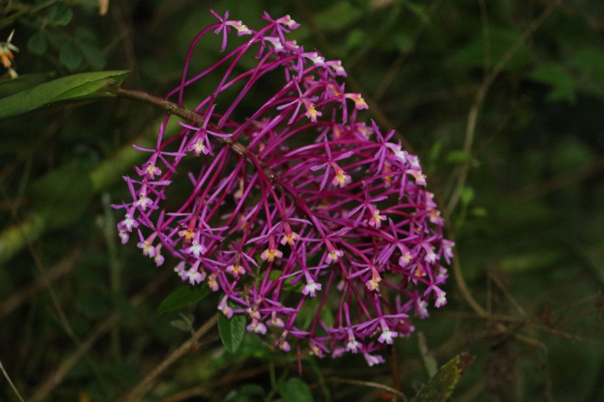 The terrain was still tough and ever changing. Raul, our personal guide explained that there are 3 levels of terrain on the trek – Andean Mountain, Cloud Forest and Rainforest and we are approaching the Rainforest – every level has its unique personality but we had more time to absorb the beauty here – Andean orchids in every shape and colour, incredible trees and mosses and of course, stunning butterflies that seem to be particularly attracted to me and often settle on me for a brief moment that disappear as fast as they arrive.